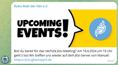 | 15:55, 27. Aug. 2024 | Igh jitsi meeting.png (Datei) | 242 KB | Igh-adm | 1 | ||
